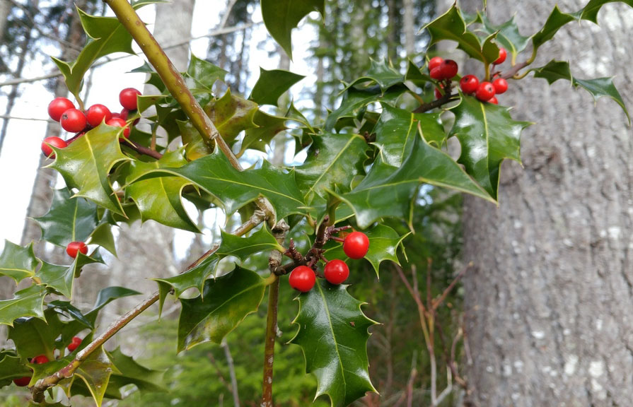 Humans have been brightening their otherwise dark and dreary December domiciles with evergreen boughs of holly since at least the age of the Druids. The practice has continued into the modern era, with the festive shiny green leaves and bright red berry-like fruits (botanically-speaking a drupe with four hardened stones) becoming synonymous with the Christmas season.